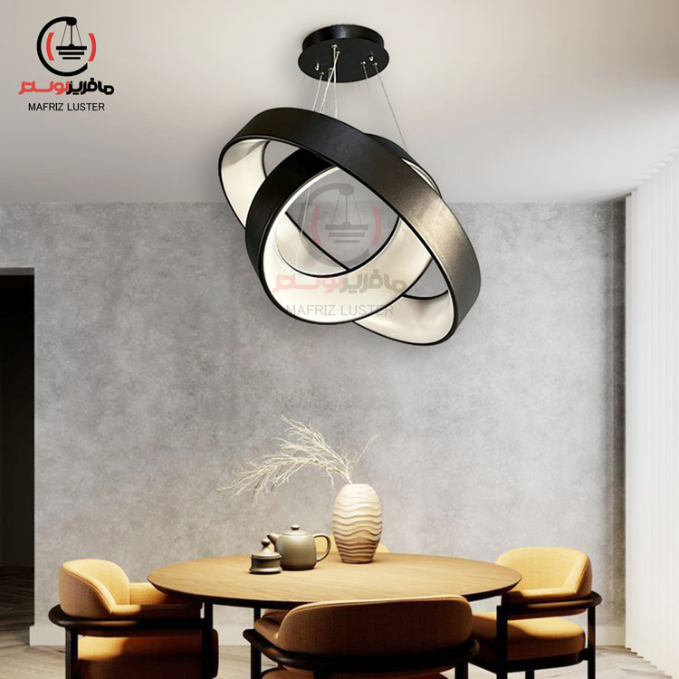 لوستر آویز تارا مدل مدرن دایره ای رینگو دو حلقه با قطر 60 و 40 سانتی متر و پهنای 10 سانتی متر. ارتفاع بند و سیم این لوستر از 20 س تا 110 سانتی متر قابل تنظیم است. این آویز شامل سه نور مهتابی ، آفتابی و نچرال میباشد که با ریموت کنترل و اپلیکیشن تلفن همراه قابل تغییر میباشد و همچنین دارای چهار رنگ بدنه سفید ، مشکی ، طوسی و طلایی میباشد که در قسمت تنوع کالا قابل انتخاب میباشد. این آویز مناسب انواع فضاهای مسکونی ، اداری و تجاری میباشد و همچنین مناسب برای روی کانتر ، میز غذاخوری و سایر موارد دیگه میباشد. مشتری گرامی جهت اطمینان از خرید محصول ارجینال لطفاً از فروشنده اصلی (صنایع روشنایی تارا لوستر) خریداری نمایید.