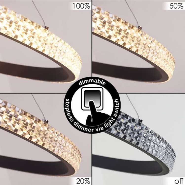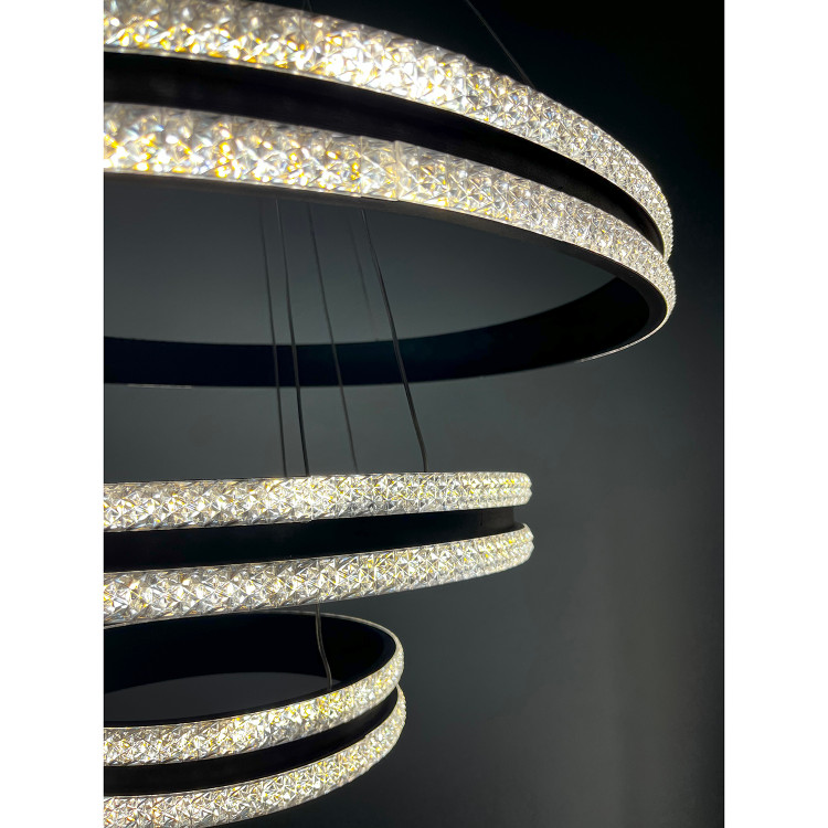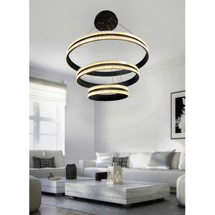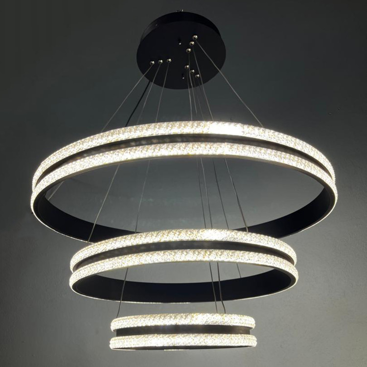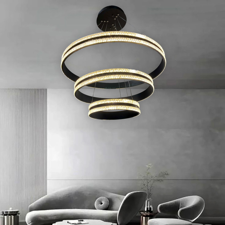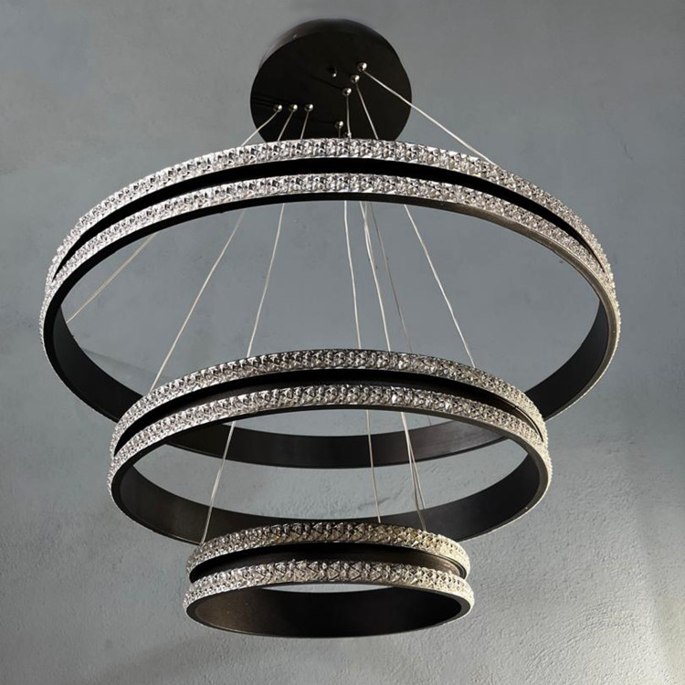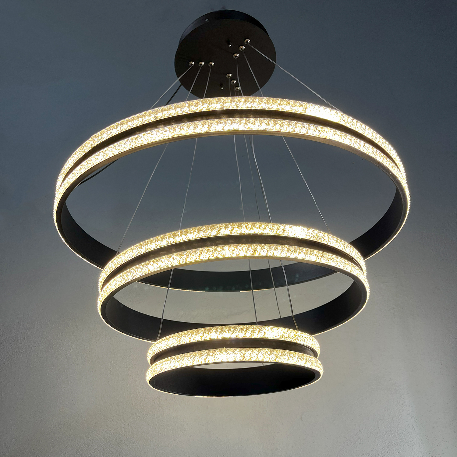 لوستر آویز تارا لوستر مدل مدرن دایره ای سه لاین با قطرهای 70/50/30 سانتی متر دارای روکش کریستال توسط سیم آویز به ارتفاع حدود 80 سانتی متر مهار شده است و قابلیت تنظیم ارتفاع، فرم و چیدمان دارد این آویز سه حلقه شامل سه نور مهتابی ، آفتابی و نچرال میباشد که با ریموت کنترل و اپلیکیشن تلفن همراه قابل تغییر میباشد و همچنین دارای چهار رنگ بدنه سفید ، مشکی ، طوسی و طلایی میباشد که در قسمت تنوع کالا قابل انتخاب میباشد. مناسب انواع فضاهای مسکونی ، اداری و تجاری میباشد و همچنین مناسب برای روی کانتر ، میز غذاخوری و سایر موارد دیگه میباشد.