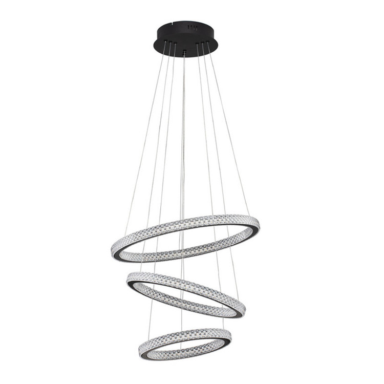 این لوستر تولید شده شرکت مافریز لوستر (تارا لوستر) و دارای سه حلقه دایره ای شکل به قطرهای 50-30-20 و نور دهی به بیرون دارای بدنه آلومینیومی و روکش کریستالی میباشد که نور پردازی قابل توجهی دارد ، دارای چهار رنگ بدنه سفید ، مشکی ، طوسی و طلایی میباشد که در قسمت تنوع کالا قابل انتخاب میباشد و دارای سه حالت نور مهتابی ، آفتابی و نچرال میباشد که با ریموت کنترل قابل تغییر و تنظیم است قابلیت تنظیم ارتفاع و چیدمان هر حلقه را دارد برنامه موبایل و حالت شب از دیگر امکانات این لوستر میباشد و بسیار سبک و نصب آسان دارد