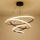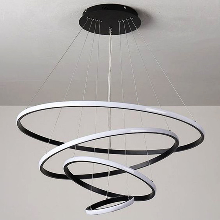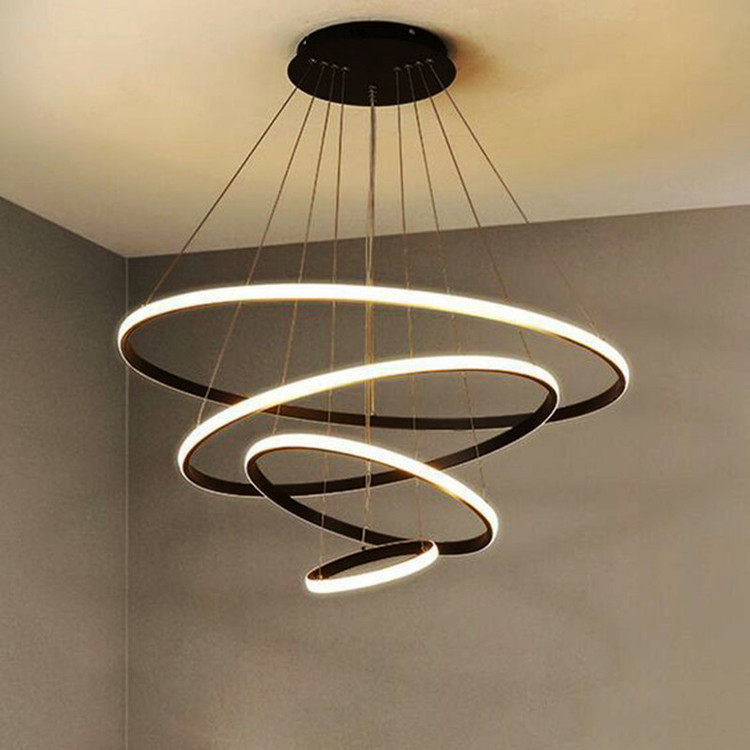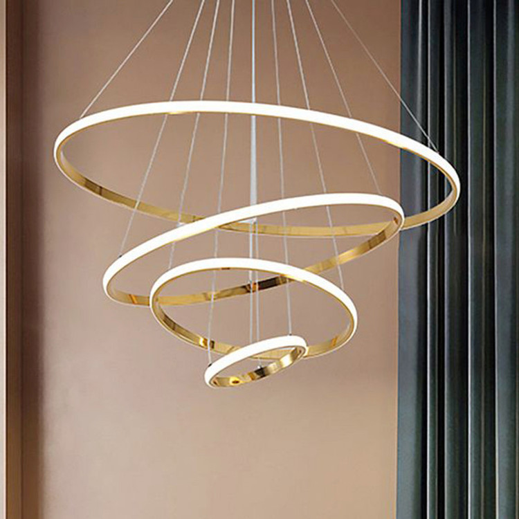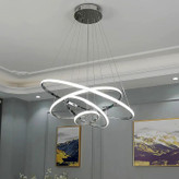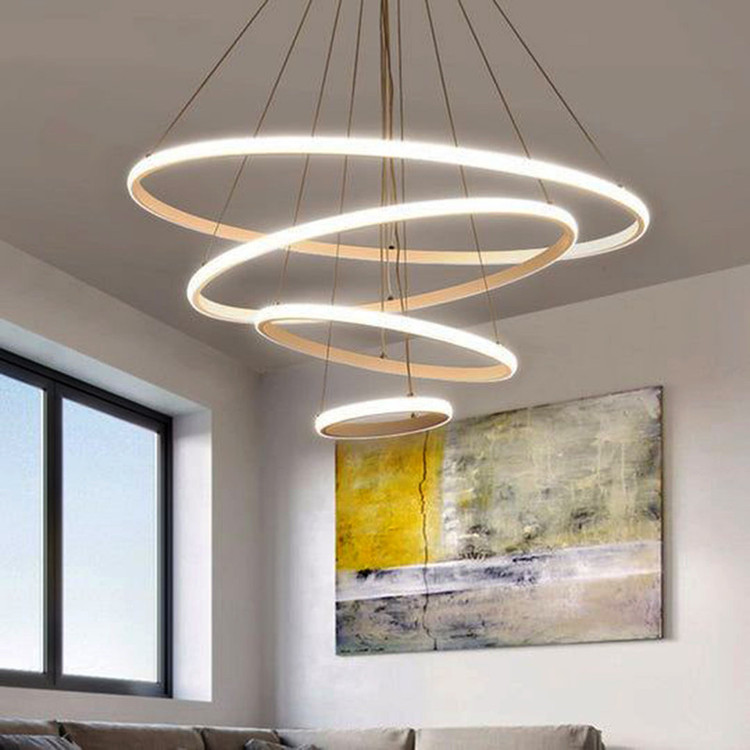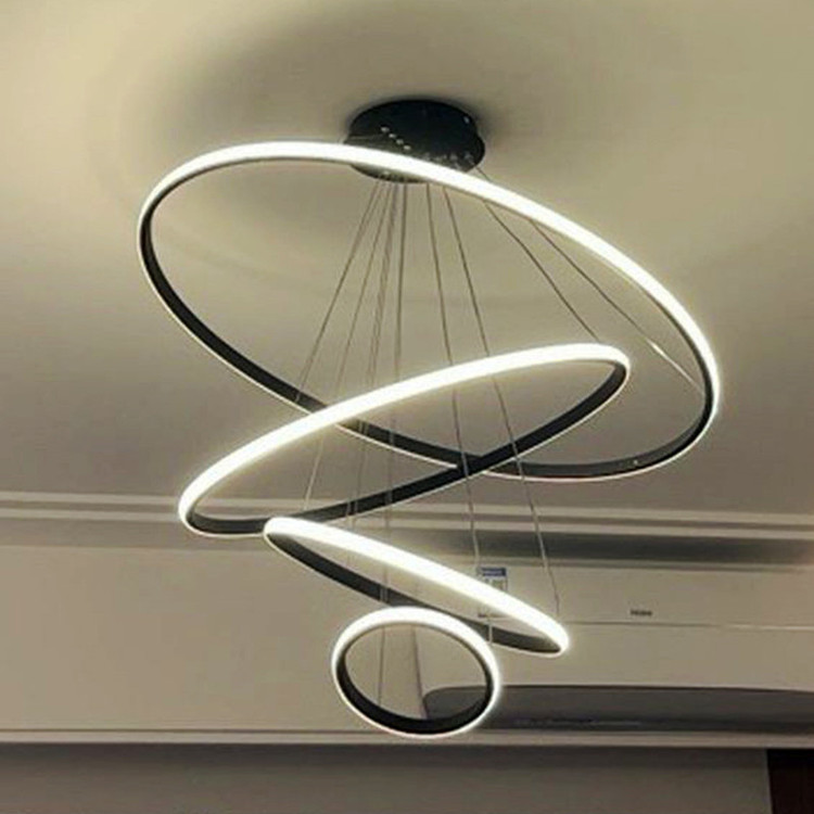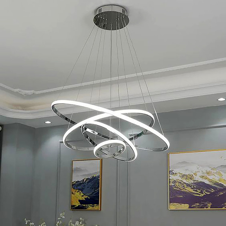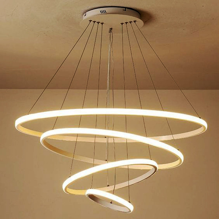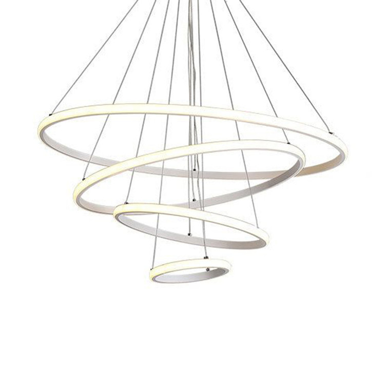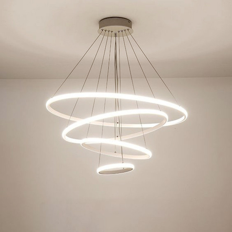 لوستر مدرن چهار حلقه نور به بیرون دارای قطرهای 90/70/50/30 سانتی متر دارای بدنه آلومینیومی و روکش سیلیکونی می باشد دارای چهار حالت نور اعم از آفتابی، مهتابی، نچرال و حالت شب می باشد که با ریموت کنترل قابل تغییر و تنظیم است و همچنین امکان نصب اپلیکیشن تلفن همراه در نسخه های آندروید و IOS فراهم است رنگ بدنه الکترواستاتیک کوره ای و شامل چهار رنگ سفید، مشکی، طلایی و طوسی که در قسمت تنوع کالا قابل انتخاب است ارتفاع و چیدمان لوستر به دلخواه مشتری قابل تنظیم می باشد