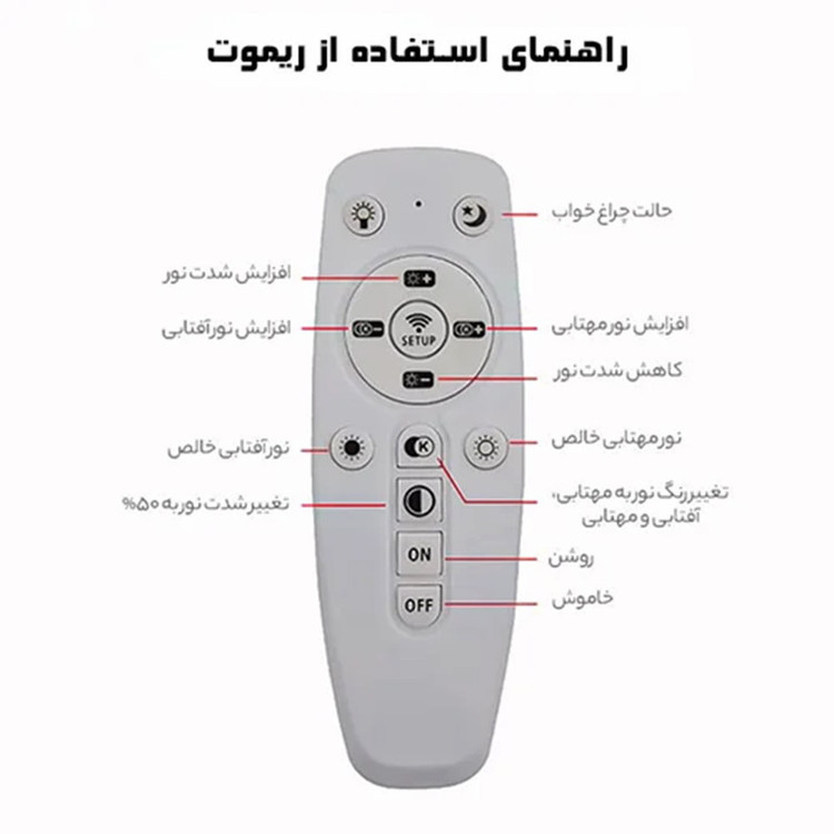 دیدن محصولات مرتبطلوستر مدرن لاینر مدل دایره تک حلقه با سایز 50 سانتی متر و سبک نور به داخل و با قابلیت تنظیم ارتفاع. این لوستر دارای سه حالت نور آفتابی ، مهتابی و نچرال میباشد که با ریموت کنترل قابل تغییر میباشد و همچنین دارای چهار رنگ بدنه سفید ، مشکی ، طوسی و طلایی میباشد که در قسمت تنوع کالا قابل انتخاب میباشد.